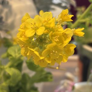 白菜を食べた後、下の部分を水栽培して、花が咲いています🌼 菜の花より苦味がなく甘いそうです🌿