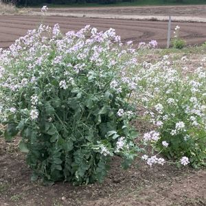 畑に花が咲くってのも良いけど さっさと片付けてね 種が付いてるよ