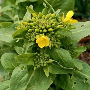 ❀菜花🌿収穫前に咲いてしまった✨菜の花✨ ❀小松菜🌿白菜🌿チンゲンサイ🌿ノラボーナ🌿などの花芽を収穫❇️春の楽しみ💚菜花💚 ❀白菜の菜花🌿と菜の花💛 ❀大根も花芽が出てきました🌿どちらも早く食べないと🤍🌿😋 ❀大根の隣にこぼれ種からのビオラ💜長いこと咲いています✨