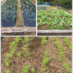 セグロウリミバエのせいで 夏野菜のウリ類の家庭菜園での 栽培自粛をしてきた夫は 嬉々と趣味の家庭菜園開始。 タマネギ🧅、人参🥕、大根 その他にほうれん草、小松菜 が写真には写ってないが 少し芽をだしてきた。 来年明けには 収穫出来そうです🥕🧅🥬