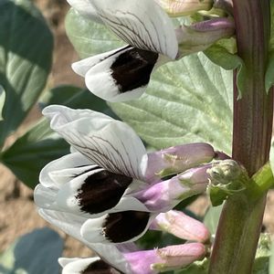 近所の幼稚園が体験学習用に運営している畑に珍しい花が...ソラマメの花です。