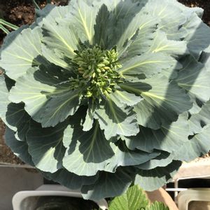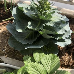 はい、これは何でしょう? 答え、花が咲きそうになっているキャベツでございます♪ スーパーで買ってほぼ食べ尽くした残りの芯を植えたもの。 虫が出て葉を喰われる前に収穫しなきゃなのかなとか思っていたんだけど、 これ、花はどうしたもんだろう?咲かせる前に蕾だけ摘んで湯掻いて食うか? YouTubeで、とある農家が一個のキャベツから5、6個の子キャベツを増やすことが出来る (中心から星状に茎が伸びていた)というのを見たので、 ぜひそれを再現したいのだが!