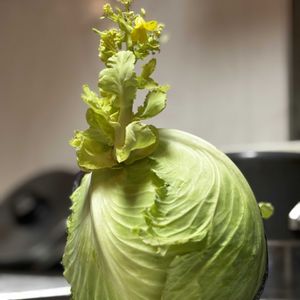 台所でくり抜いたキャベツの芯🥬 見事に花を咲かせました👏