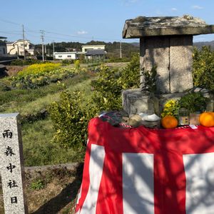 ①②③④ 今日は3月15日は、春のお社日さんの日。社日は、春分の日に最も近い戊(つちのえ)の日、土地の神様・産土神(うぶすながみ)に作物の五穀豊穣を祈る大切な雑節の一つ。(秋の社日は、収穫に感謝する日。今年は9月21日) このうちのお社日さんの左側面には、「文政八年酉年」(←1825年)、背面には「兩森中社日」の文字が彫られていたが、経年劣化によりほぼ読めなくなっていたので、今年1月に夫が控えめ目な石標を建て、文字を前面・背面に残した。しばらくは凌げるかな〜😊 おそらく昔はこのお社日さんにお参りに訪れた人達もそれなりにいたんだろうけど、今はうち一軒だけ、春と秋のお社日に、家で採れた作物をお供えさせてもらっている。(今年は、甘夏、スイートスプリング、お餅・春菊、菜花、お酒、自然塩) どうせなら楽しそうにお祀りしようという夫の提案で、今回初めて紅白の幕を張ってみた🤭❤️🤍❤️⤴️⤴️ 昔うちの土地に建てられたお社日さん。約35年位前に道路拡張工事の為北西にそのまま移築した折、亡き義父が植えた桜2本と奥にハナズオウの苗。あれからまた時を重ね、木々も少しずつ成長して今年も蕾を膨らませている。 私としたことが、今まで満開の美しい時期にここを訪ねたことが一度もなかったので、今年こそ美しい桜のショットを撮りたいと思っている🤳🏻🌸🌸🌸🌸🌸 2026.3.15🤳🏻 ⑤昨日、友達が苺農家さんで苺を買って差し入れしてくれた。ん〜〜、食感といい味といい、最高の美味しさ!🏆😋 伊丹の花友さんが「15日はいちごの日だよ🍓」と教えてくれたので、今日の投稿に回したよ➰😋👍 有難う💕💕 2026.3.14🤳🏻