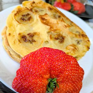 こんばんは(*^^*) 今日も一日、お疲れ様でした。 今日は15日、いちごの日でしたね〜🍓 2枚組での投稿です。 ぷーさんが気前よく買ってきた、 佐賀県産の🍓「かおりの」。 バナナパンケーキを焼いたから、 一番大きいのを添えました〜(*´艸`*)♪ バナナもタグ付けしたから、数に入れちゃお♬ 97