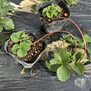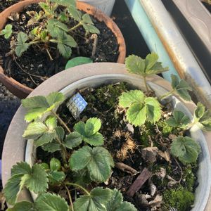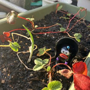 イチゴ🍓のランナー苗 プランターに定植しました こんな寒い日にすること?? と自分にツッコミを入れたくなるほどの真冬日ですが🤣 屋内で作業しました 1 菜園に植えた苗から伸びたランナーを見つけた👀 培養土を入れたポットに固定 11/23に投稿した内容です 2 寒いので苗は大きくならないけど、発根を確認したので親株から切り離し 3 プランターに3ポット ランナーの方向を揃えて植えます そうすると実の向きが揃うはず 4 ビニールで保温、通気穴を開けて蒸れないように イチゴは寒さには結構強いので 真冬だけど強行しました しばらくは玄関先で養生させます 寒波が去ったら南側軒下に置く予定です これから春までにしっかり根を張ってくれますように❣️