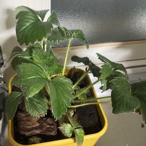 イチゴだと教えていただきました。 皆さまありがとうございました😊 質問して良かったです💞 ロバツスの鉢から出てきた🌱 これは何でしょうか? 元気だから雑草かな? 教えてください🙏