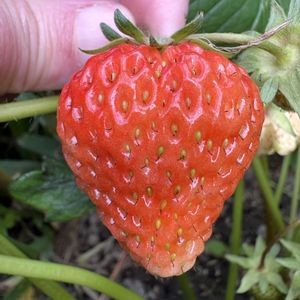 苺二つしか大きくならず!! そして一つは色づきませんが!!! 種が赤くなってきてるんですよーわかります!!!ほとんど赤いでしょ? これ白苺でしょうか!、! 今年埋めた白苺の種は全滅させたくさいのですが!!!できてる。 私オリジナルの白苺!! でもまずいのかなー?私の白苺!! もうすぐ様子を見て食べてみたいと思います。 2枚目は同じ日に咲いた苺王道の赤い苺も結構色付いてます🍓 3枚目は灰色かび病らしいです。腐りました。 二つだけ食べれそうです。 白苺楽しみだなー🥰