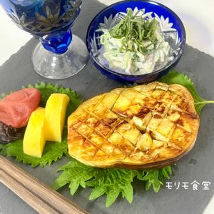 アウト老(モリモ)の昼食🍽️ アホでおサルなモリモはバナナばっか食べてるわけちゃいますよ😌 箕面(みのお)の数少ない友人からお中元で泉州の水なすが届いたのでさっそくクッキング しかし 白飯がなかったんやったーーー💦 サトウのご飯もない😫 今、白飯(古古古米)と麦のミックスご飯炊いてます😮💨 本日のメニュー ↖️沖縄モズク ↙️自家製梅干(去年の)と霧島たくあん ↗️水菜の白和え ↘️泉州の水なす焼き✨✨✨✨ 泉州の水なすって知ってますか⁉️ アクの無いナスで生でも食べられます🍆 畑で喉が渇いたら、このナスを絞って水代わりに飲んだなーーんて話もあるくらい水分をたくさん含んでます👍