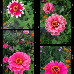 おはようございます🎶 1️⃣、2️⃣畑の絞り咲きジニア(キク科) DAISO産の種で、可愛いので毎年植えてます🥰‼️ (こぼれ種のもあります) 花の寿命が長いことから、百日草、あまり言いませんが、浦島草、長久草(ちょうきゅうそう)とも呼ぶそうです。 この前テレビで、「花を花瓶に生ける時、台所洗剤を2滴程入れると倍は長持ちする」と言ってたので、さっそくジニアで実行中‼️ 3️⃣小松菜! 去年は発芽せず😂‼️ 今年は芽が出て嬉しいです😆🎵🎵 4️⃣水菜! 2年ぶりに植えました😁 5️⃣二十日大根! DAISOで2袋買ってたので、1つは庭に! もう1つは畑の空いたところに私が勝手に植えました🤭‼️ なかなか雨が降らず、主人との水やりは大変でしたが、ようやく雨が降りポツポツと発芽しました🎵