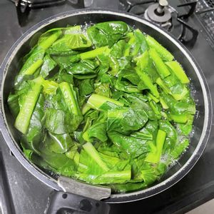 大量に収穫した小松菜をさっとボイルしてジューサーで👌 炒めた玉ねぎと一緒に調理しグリーンカレーに変身❣️ そしてブロッコリーのわき芽は葉っぱごとボイルして👍 なんとなんと柔らかくて美味しい😋 皆さんもお試しあれ😉 今日も元気に楽しく👋