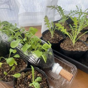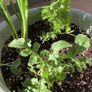 今年はベランダで サラダリーフを育ててます 彩りサラダリーフの ルッコラ こまつ菜 水菜 わさびリーフ レタスグリーンリーフ 青ネギも植えてみました 育ったそばから、ちぎって サラダ🥗で食べてます