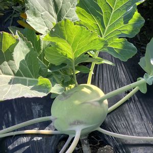 コールラビを収穫しました。大きさがまちまちですが、小さいものはサラダ、大きなものはスープで食べる予定です。