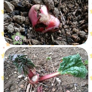 ルバーブ & フキノトウ ①②秋に株分けしたルバーブが 沢山芽を出して来ました♫ ③雪解け直後のぬかるみの中から フキノトウが顔を出しました♫