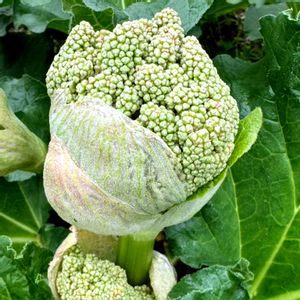 《番外編》 これな〜んだ🙌 5枚目 去年の姿。 鉢から下ろして10年目🙌 なな、なんと😳‼️ 花が咲くみたい😱⁉️ 蕾だって🤩 スゲェ〜‼️ じゃない😝 スゴーイ😆👍👍👍 茎がぐ〜んと伸びて 赤い花が咲くんだって🤩🙌 今年は、ジャム作りは諦めてお花を鑑賞しましょう🥰💕 どんなお花が咲くのかな🙄☝️ 楽しみ〜💓 答えは、 ルバーブ(Rhubarb)です。