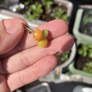 これまた!!ちっちゃいの!!取れちゃってたけど!!マイクロトマトよりマイクロ🍅じゃないですか😊環境が悪くてこんな小さい実ばかりですがちゃんと赤くなってきてますね。可愛いです。
