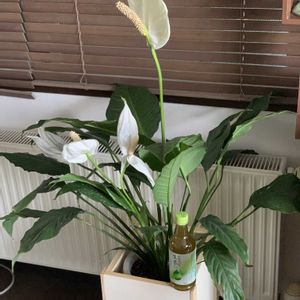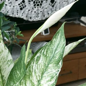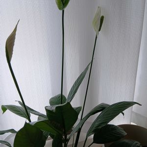 おっ‼︎ お花は長いこと見てない、と 3月19日にアップした 我が家のスパティフィラムに 2023年お迎え以来のお花が‼︎ わぁーい、うれしい♪ 育て始め 2023年3月
