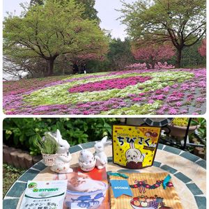 ①↑昨日行った赤城南面千本桜の芝桜🌸 ↓mamanyanさんより、素敵なプレゼント🎁が届きました~🎶😃 サボテン・多肉・ミニ観葉の活力錠剤、MOOMINミィさんの巾着袋、ちびさくミルクチョコレート、福岡のご当地マグネット、それから、心のこもったお手紙も❣️ mamanyanさん、嬉しいプレゼントをありがとうございます❣️🙇♀️💕 うさぎさん2つとエアプランツは、以前やっちゃんさんからいただいたものです🎵 イースターの卵✨ 🏷️イースター つけさせてください😄🎶 ②~⑤赤城南面千本桜です✨
