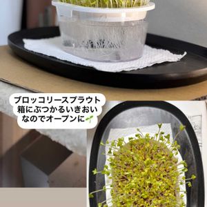 なぜか今回バラバラ方向で 刈り取りにくいこと甚だしかった ブロッコリースプラウト🥦🌱 同じ種なんだけどな 22日昼からスタートしたので 約8日。さ、次スタート。