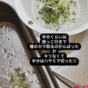ブロッコリースプラウト 昨夜食べました。 下のケールはスーパーで買ったもの。 種のカラさえもっと簡単に流せたら 根っこごとぜんぜん食べられる。 ただカラ取るのが、、 そして昨日の夜から次の種をセット。
