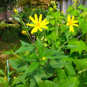 今春、道の駅で購入した菊芋を一つだけ埋めておいたら、な~んにもお世話してないのに、ヒマワリみたいにみるみる大きく育ち、きれいなお花が咲いています。 収穫が楽しみになってきたな。