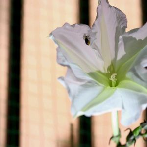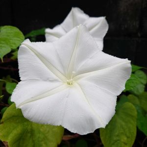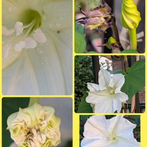 ヨルガオ(ユウガオ) 開花までかなり時間かかりましたが、度々大きく真っ白なお花咲かせています 三枚目は夜咲きましたが、中途半端な開きかた それでも嬉しかったので投稿します