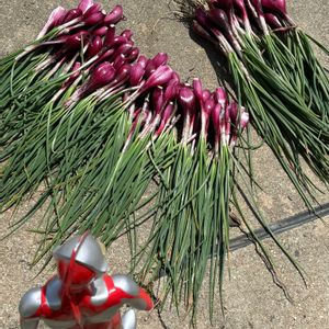 収穫か 久しぶりだな (; ̄ェ ̄) すんません 赤いらっきょです とりあえず生でかじりましたが 辛味感じず食べちゃいました ウルトラマンさん 食べますか? (🥚I🥚) こっちを頂こう 🍉 あ! それは次の種球根です 食べないで〜