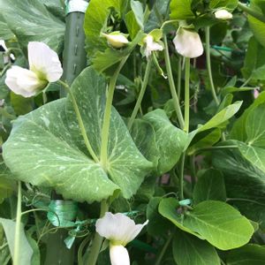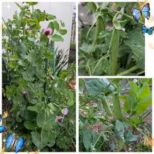 🌃こんばんは✨️ 今日のお花: カラスノエンドウならぬ豆苗の🫛さやえんどう😁 先日ご紹介した豆苗が小さな畑でぐんぐん育っています😄 小さなさやえんどう🫛も付き始めていま~す☺️