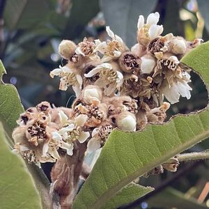 枇杷(ビワ)のお花の様子です。 ほとんど、咲き終わっていました。咲いた姿が可愛いのに見逃しました💦