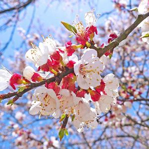 『臆病な愛』『乙女のはにかみ』『疑い』『疑惑』。「乙女のはにかみ」は、サクラより一足先に、やさしいピンクの花を咲かせることに由来するといわれています。6月ごろ、オレンジ色の実をつけます。ジャムやシロップなど加工品としての利用も多い果物です。花期は3~4月、旬の時期は6~7月です。