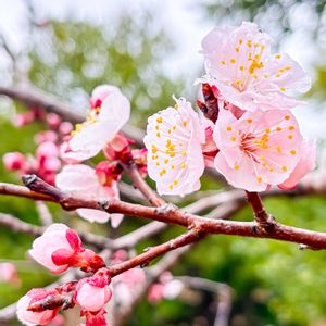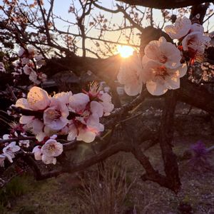 アンズ バラ科サクラ属 落葉小高木 中国北部、モンゴル周辺、ネパール、ブータン原産 別名はカラモモ、アプリコット 奈良時代に日本に渡来した。 果実の収穫や花の観賞を目的に全国で栽培されている。 花期3〜4月 1カ所から複数の花柄が出るため、花数も多く、ウメと違って萼が反り返る。 5弁花で、花弁は円形で先はくぼまず、淡い紅色になる。 1本の雌しべが多数の雄しべが囲んでいる。 サクラが咲く少し前に咲くそうです。 🏷️土曜はお空の発表会 に参加させていただきます。