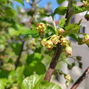 🟨フサスグリ ホワイトカーラント🟩 半透明な実がなるマニアックなフサスグリのホワイトカーラントという品種ですが、初めて花が咲きました! 本当は名前の通り房状に咲くのですが…… まあ初めての花なのでこんなもんでしょう。 めちゃめちゃ緑色で小さいので誰も気づかないような花ですが、だれが花粉を運ぶんでしょうかね?知っている方がいたら教えてください🤔 自家和合性らしいので、実ができたらまた投稿します👍