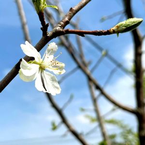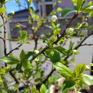 おはようございます☀ 今日のお花 ではなく プルーンの花 植えて3年目 初めて花が咲きました♪ 剪定のしすぎか チラホラ寂しい感じですが咲いてくれて嬉しいです♡ このまま結実までしてくれるとさらに嬉しいなぁ😉 皆さま 今日も良い一日でありますように🌿🤍🌿
