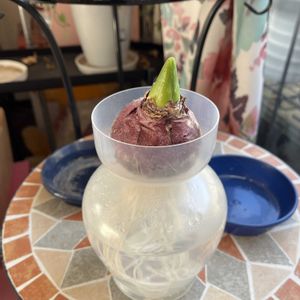 おはようございます♪ 水耕栽培のヒヤシンスが芽を出しました❣️ ② ご近所さんの柚子 毎日欲しそうな目で見てたら、譲ってもらえるかな😅