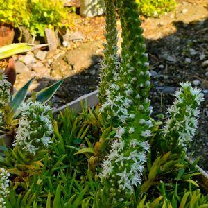 葉がロゼット状につく春秋生育型の多肉植物です。株の状態がよければ花を咲かせることがあります。葉に白い