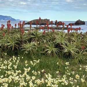 静岡県下田市須崎 爪木崎水仙祭り🤍に行って来ました🤗 ① 〜② 爪木崎の水仙🤍とアロエ ❤️ ③ 水仙とアロエと句碑 この句碑は女性歌人「岡本眸(おかもとひとみ)」さんの俳句が書かれています。 「抱かねば 水仙の揺れ やまざるよ」 ④ イソギク💛と柱状節理🪨 爪木崎西側の海岸には「俵磯」と呼ばれる"柱状節理"が広がっています🪨 ⑤ 爪木崎灯台周辺に咲いていた花々💐 左上 爪木崎灯台 左下 マサキの実 右上 ツバキ 右中 ツワブキ 右下 ハマダイコン 2026.1.26 撮影 🤳
