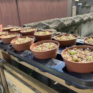 ゴツゴツした岩っぽい鉢を見つけ、ハビタットスタイルに仕立ててみました☆😃🏜 西アフリカの砂漠地帯に育つコノフィツムに見えるかな?😁 3-5枚目は作業中のpicです! まずは鉢底ネットや石を敷いてから、砂多めの水はけの良い用土を入れ… 次に石英や瑪瑙の石を配置し、少しマグァンプを撒き… 最後にコノフィツム🟢たちを置いてから、隙間に花崗岩を粉にした砂を撒きました! これに花が咲くのを夢見て、頑張って育てます🎵😆🌸