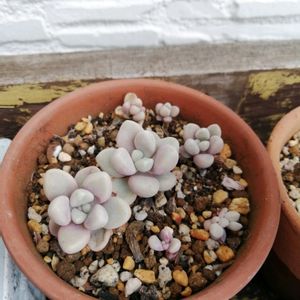 葉がロゼット状につく春秋生育型の多肉植物です。株の状態がよければ花を咲かせることがあります。葉に白い