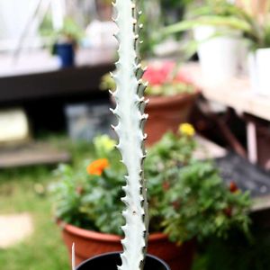 「ユーフォルビア ホワイトゴースト」 5年前に胴切りした上半分の挿し木が育ちました 不安定になったのでまた胴切りを考えています