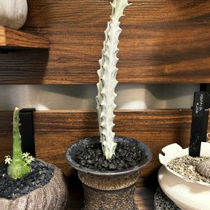 ウチでは2番目に大きく育った 「ユーフォルビア ホワイトゴースト」👻 手が1本でスッキリとしてお気に入りなので このまま育ってほしいと思っています これより大きな別の「ホワイトゴースト」は 途中で折れそうになってきたので2つに 切ってしまうかどうしようか考え中です🤔