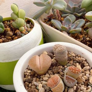 2/14リトープス2苗お迎え ---------------------------------| バレンタインの日にお迎えしたお二方♡ 小さいので、先住の大きい2苗と寄せ植えにして、場所問題クリア🤗 もう1苗ぐらい小さい子ならお迎えできそう🤭♪ 後ろのレーマーニー錦は、初めて胴切りしました🪴 上手く増やしていけるかな🌱🌱🌱🌱 3連休、嬉しすぎる💚