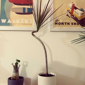 子供が幼稚園で育てたヒヤシンスです☺今日持ち帰りました。甘い香りが部屋に広がります✨今うちにある唯一のお花です☺子供がとても大切にしているので、花後はどう管理しようか困ります😖(実家の庭に植えたいなぁ🫥) で、問題はそのうしろ🌳・・・(´°̥̥̥̥̥̥̥̥ω°̥̥̥̥̥̥̥̥`) アデニウムを1月6日に剪定した後、どういう訳か大量に水やりをしてしまいました😨そして枝がシワシワしてきたので1月末に再度剪定💦 今日こんなかんじ😵これはやってしまいました😫💫💫💫