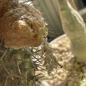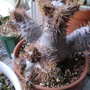 パキポディウムのサンデルシー ツボミがいっぱいできてたんですが🌼開花前に🍂枯れてしまいました😞 寒くなる前に🌼🌼🌼🌼🌼満開を見たかったんですが間に合わず 鉢がパンパンなので春に植え替えよう。 枝も✂️剪定するべきかな…😔?思案中