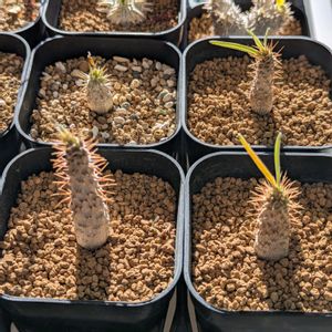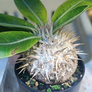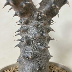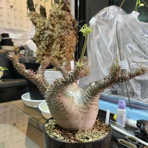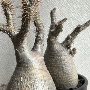 パキポディウムは代表的な塊根植物で、その中でもパキポディウム・バロニーは人気がある品種の一つです。大きな塊根と太いトゲが特徴で、赤色の花を咲かせるので...