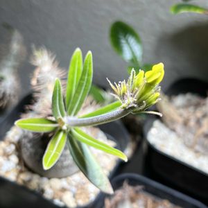 パキポディウム属 デンシフローラム✨️✨️ いまいちぱっと開かないお花😅 ポカポカ日向ぼっこ☺️🔆 🏷かずのデンシフローラム ケータイの設定を目が近いと警告が来るようにしたら、めっちゃ来る〜😅 老眼かけろって事?😆