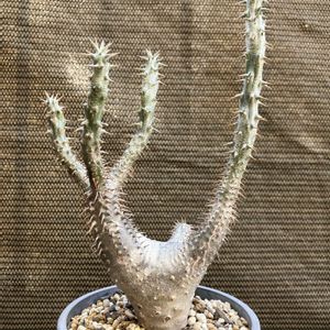 パキポディウムは塊根の部分が大きく生長してユニークな見た目が多く、種類や品種がいくつもあります。パキポディウム・恵比寿大黒(えびすだいこく)もその中の...
