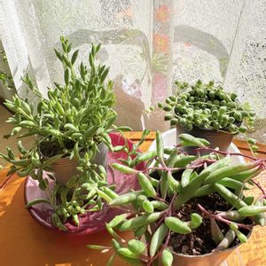 今晩は🌟 今日は植え替え待機中の3つのネックレスさん達⛓️🪴 まだ買ったままのプラの入れ物💦 お迎えした順に ②三日月🌙ネックレス 11月初めに迎えた子😊 伸びてきたぁ〜 ③グリーンネックレス 12月に来た子🟢 王道のネックレスさん、まん丸🟢 が可愛い"(∩>ω<∩)" ④ルビーネックレス 茎が紅くていいね👍 1月末に迎えた子😊 そろそろ植え替えたい❣️ もう寒波は来ない事願って🙏