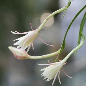 クジャクサボテン•八方美人 花付が月下美人に比べて数段よいし、花色も清楚で美しい。 乾燥にも強く、病気知らずで育てやすい。 どこからみてもいうことなし。 だから八方美人なんだって😊