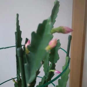 クジャクサボテン ツボミ膨らむ 花芽らしきものが現れたので、リビングに置き変えました。 たところ暖かい環境でツボミが 日にひに育ち、5センチほどに。
