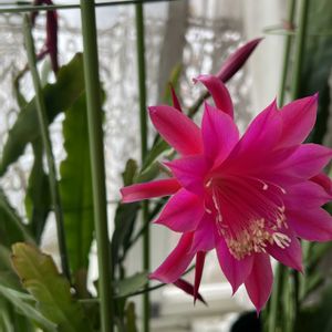 クジャクサボテン咲きました🌵 朝まで雨が降ってましたが止んでる間に公園の桜の膨らみ具合を見に行ってきます🌸
